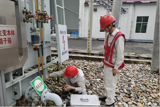 国网常德供电公司电气试验人员对受线路频繁冲击的主变开展取油工作(徐荣祥)