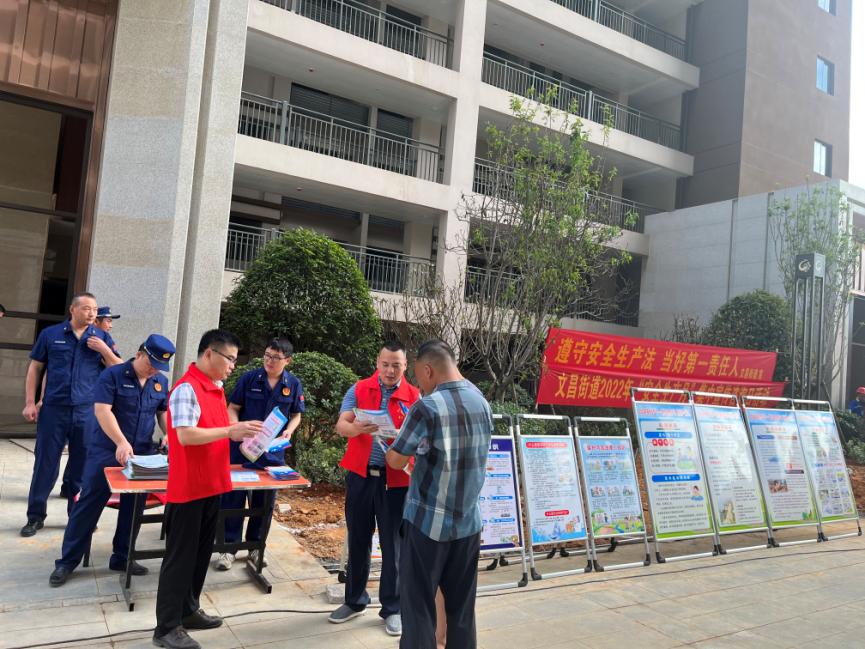 文昌街道党工委书记向旺、街道办事处主任谭亮带领应急救援队、社区干部通过现场咨询、布置安全知识宣传展板、悬挂宣传横幅、发放宣传资料、口头宣讲等多种形式有序开展宣传活动,内容涵盖消防安全、交通安全、防溺水、燃气安全、预防洪涝灾害和地质灾害、交通安全等。活动现场共向群众发放宣传资料200余份,宣讲各类安全知识,并发动现场群众认真查找、积极消除和举报风险隐患,做到防患于未然。活动现场还讲解了应急处突相关知识,包括溺水如何自救、洪涝灾害时如何保护自身安全等。