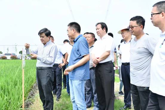 6月6日上午,中国工程院院士、院党委书记柏连阳,院党委副书记余应弘,杂交水稻研究中心党委书记许靖波,杂交水稻研究中心和水稻研究所相关专家冒烈日赴望城区高塘岭街道月圆村镉低积累水稻新品种及配套栽培技术示范基地调研早稻生长情况。望城区农业农村局党组书记胡阳光,高塘岭街道人大主席陈铁武,月圆村党总支书记陈红兵,乡村振兴一书记高明,万利种植专业合作社理事长谭辉等陪同。
