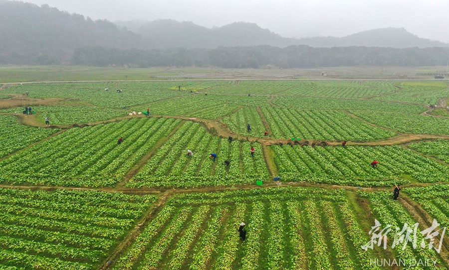 2月4日,宜章县天塘镇顺恒农业粤港澳大湾区“菜篮子”蔬菜基地,村民在忙着采收菜心。近年来,该县利用自身区位优势,构建集生产、加工、收储、物流、出口贸易于一体的农业全产业链,种植菜心、芦笋、上海青等绿色有机蔬菜,热销粤港澳大湾区。湖南日报全媒体记者 郭立亮 通讯员 吕继勇 摄影报道