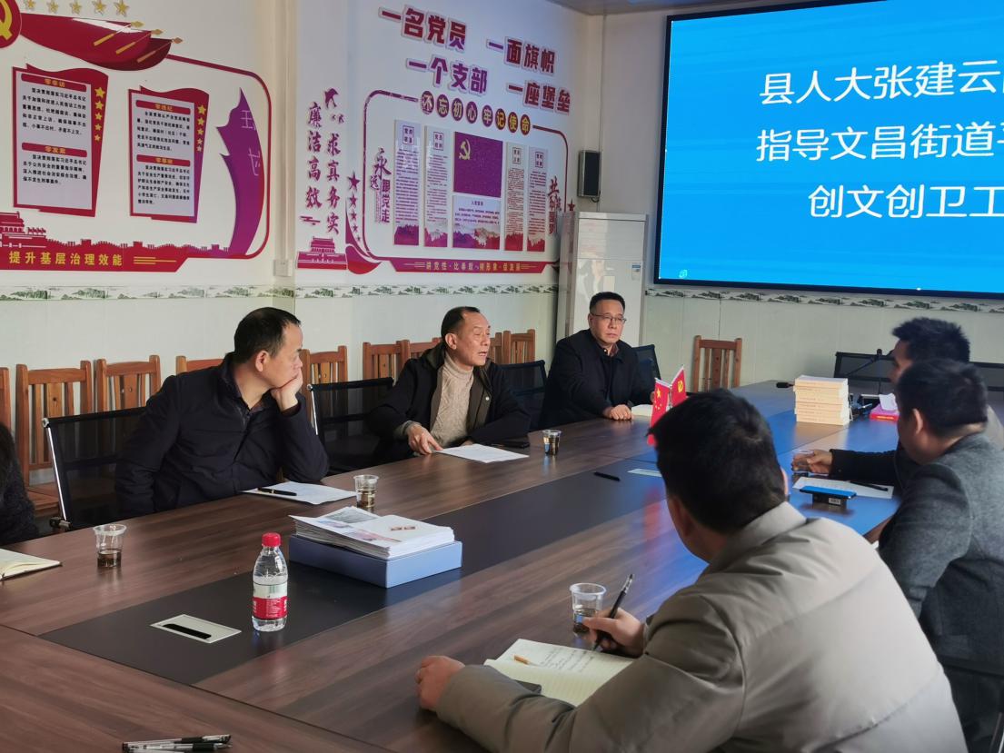 在平栋村会议室,张建云与文昌街道班子成员、平栋村两委班子开展座谈,听取平栋村关于平栋村当前创文创卫、文旅融合工作开展情况汇报,对平栋村近年来“美丽庭院”建设、村级文化广场建设取得的成绩表示充分肯定,并对平栋村在文旅融合工作开展中存在的问题、难题,以及基层对于该项工作开展提出的意见与建议进行梳理、整理。
