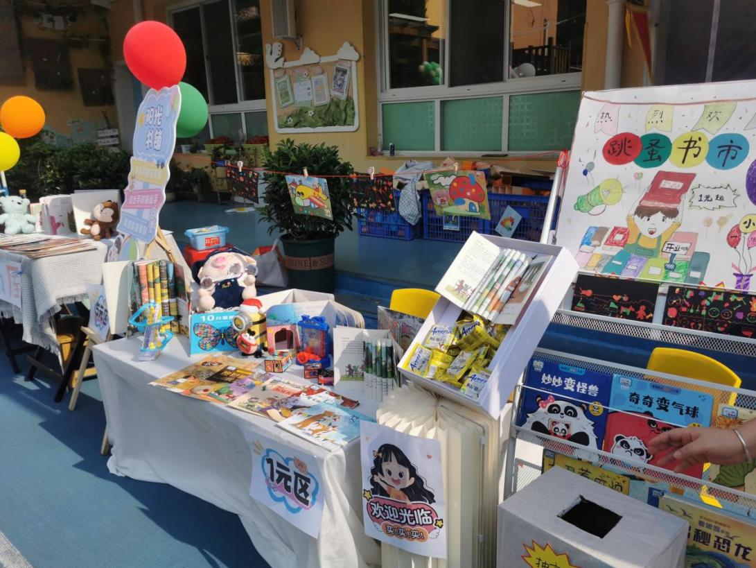 期盼已久的图书集市活动终于开市啦!幼儿园的操场瞬间变得热闹非凡....