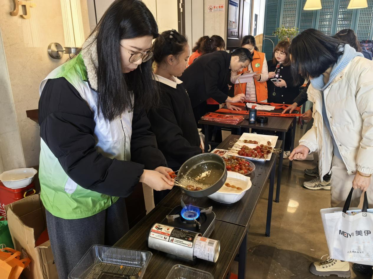 值得一提的是,活动现场还特别设置了文化传承区。春联书写台前人头攒动,社区书法爱好者挥毫泼墨、笔走龙蛇,将新春祝福融入一幅幅寓意吉祥的春联中。居民们手捧散发着清幽墨香的春联作品,感受中华传统文化的独特魅力。另一边,糖葫芦制作台同样吸引了众多居民,大家兴致勃勃地观看制作过程,品尝着酸甜可口的糖葫芦,找回了童年的美好记忆。