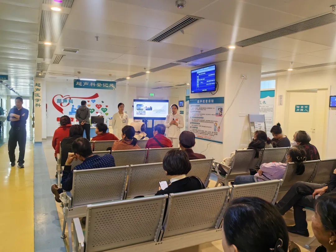 活动巧妙利用患者等候超声检查的间隙,通过知识讲解、视频播放、互动问答等多元形式,致力于加深患者对常见超声检查的认知,缓解他们面对检查时的紧张焦虑情绪,同时细致科普超声检查前的准备事项,以实现更高效、精准、快速的检查流程。活动现场气氛轻松活跃,患者们在欢声笑语中掌握了超声检查的基本常识,健康管理意识也得到显著提升。