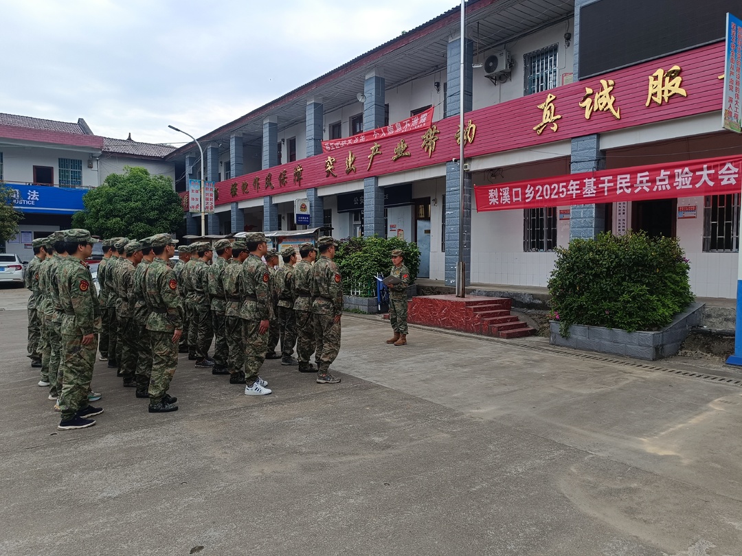 华声在线4月16日讯(通讯员:杨承渊)为深入贯彻落实党管武装工作要求,全面提升民兵队伍应急应战能力,4月15日,梨溪口乡武装部组织基干民兵开展2025年度民兵整组点验大会。乡民兵政治教导员,乡武装部长及全体基干民兵参加活动。