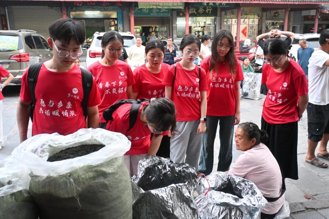 2025年7月12日清晨,湖南第一师范学院数学与统计学院“数映红途”乡村振兴促进团的成员们,踏着凌晨五点的微光出发,耗时40分钟步行至古丈石板街茶市。为赶上清晨六点至八点的交易高峰,这场与茶农的“对话之约”,让团队在茶香缭绕中读懂了古丈茶叶的产业密码与人文温度。
