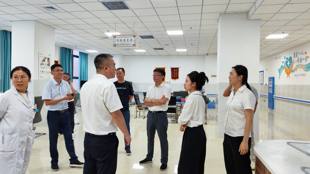 调研组先察看住院大厅、门诊楼、医技楼等重点区域,随后聚焦医院重点特色科室康复科,深入治疗区详细了解人才结构、治疗病种、疗效评价、设备配置以及中医药技术在康复领域的应用与创新。彭志刚高度肯定康复科“传统中医康复+现代康复技术”融合模式,鼓励持续深耕、总结经验,做强特色品牌以惠及更多患者。