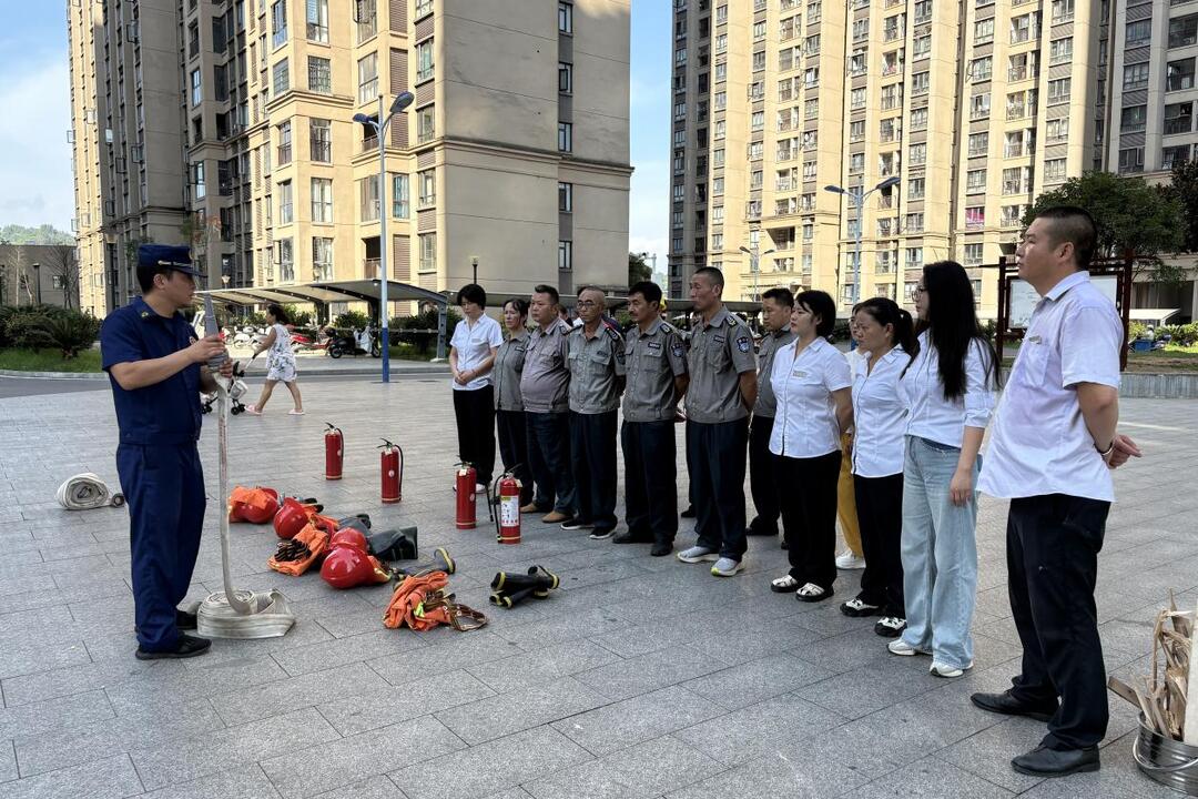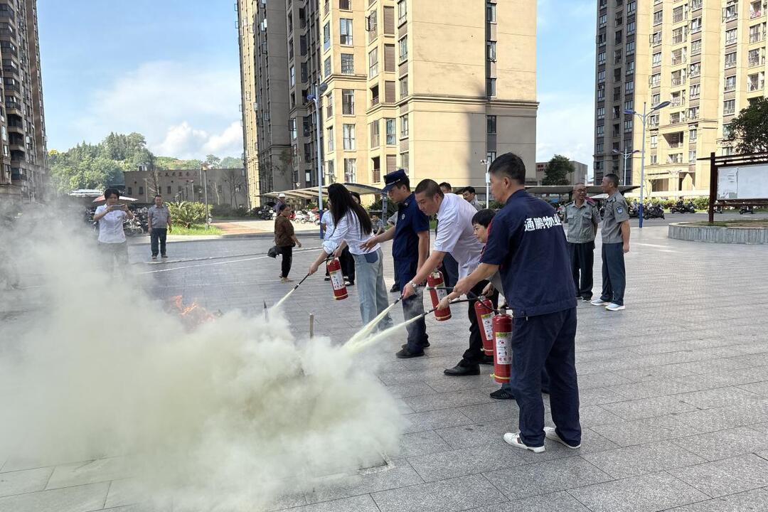实操环节,消防宣传人员向小区工作人员、居民详细讲解了灭火器、消防水带等器材的使用方法,并现场演示灭火操作。“提、拔、握、压,对准火焰根部喷射!”在宣传员的指导下,居民们纷纷上前体验灭火器的使用,掌握了“灭早灭小”的关键技能。