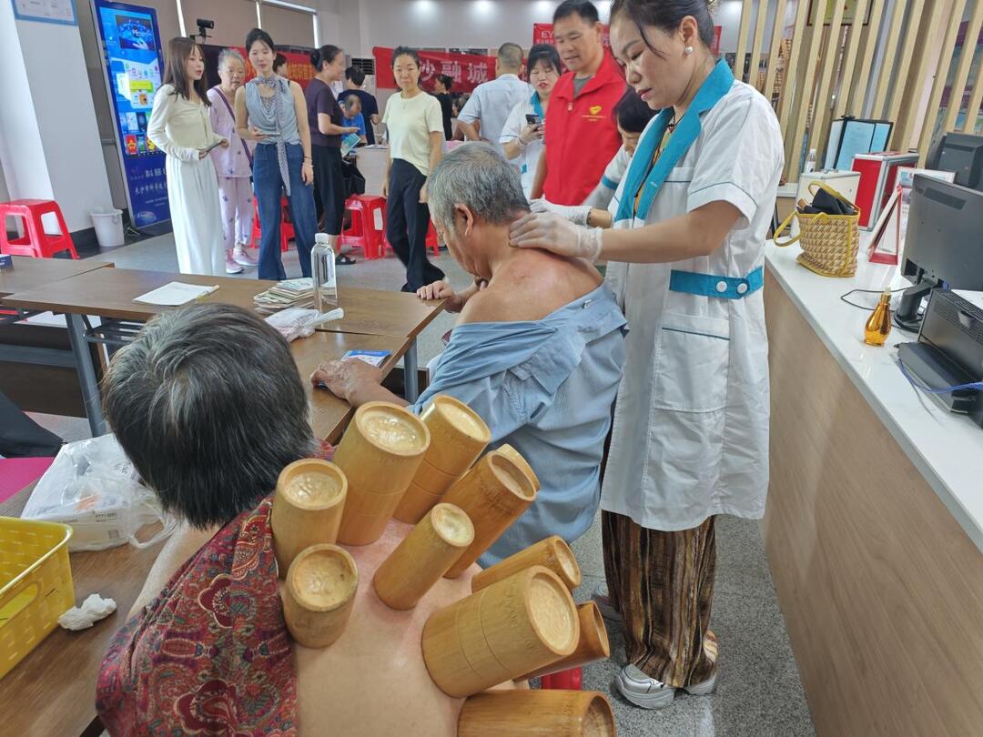 活动现场科学划分义诊、义剪、宣传三大核心服务区域,各区域秩序井然、人气满满。其中,义诊区堪称 “健康守护阵地”—— 融城医院内外科、爱尔眼科医院、健儿听力助听医疗、优仕口腔医院、仁康堂中医理疗诊所组建的 “医疗志愿联盟”,带来测量血压、检测血糖、专业刮痧与穴位按摩、诊疗建议、视力检查、牙齿修复等全维度健康服务,用专业守护居民健康。义剪区则是“温情传递窗口”,志愿者提前备好消毒后的剪刀、梳子,一边细致询问老人对发型的需求,一边轻声拉着家常。宣传区作为“知识普及平台”,同样热闹非凡。志愿者与银行人员分工协作,向过往居民发放宣传彩页,并结合近期典型诈骗案例,手把手教老年居民识别“保健品诈骗”“虚假投资”等常见骗局,提醒大家守护好“钱袋子”,让慈善理念与防骗知识同步深入人心。