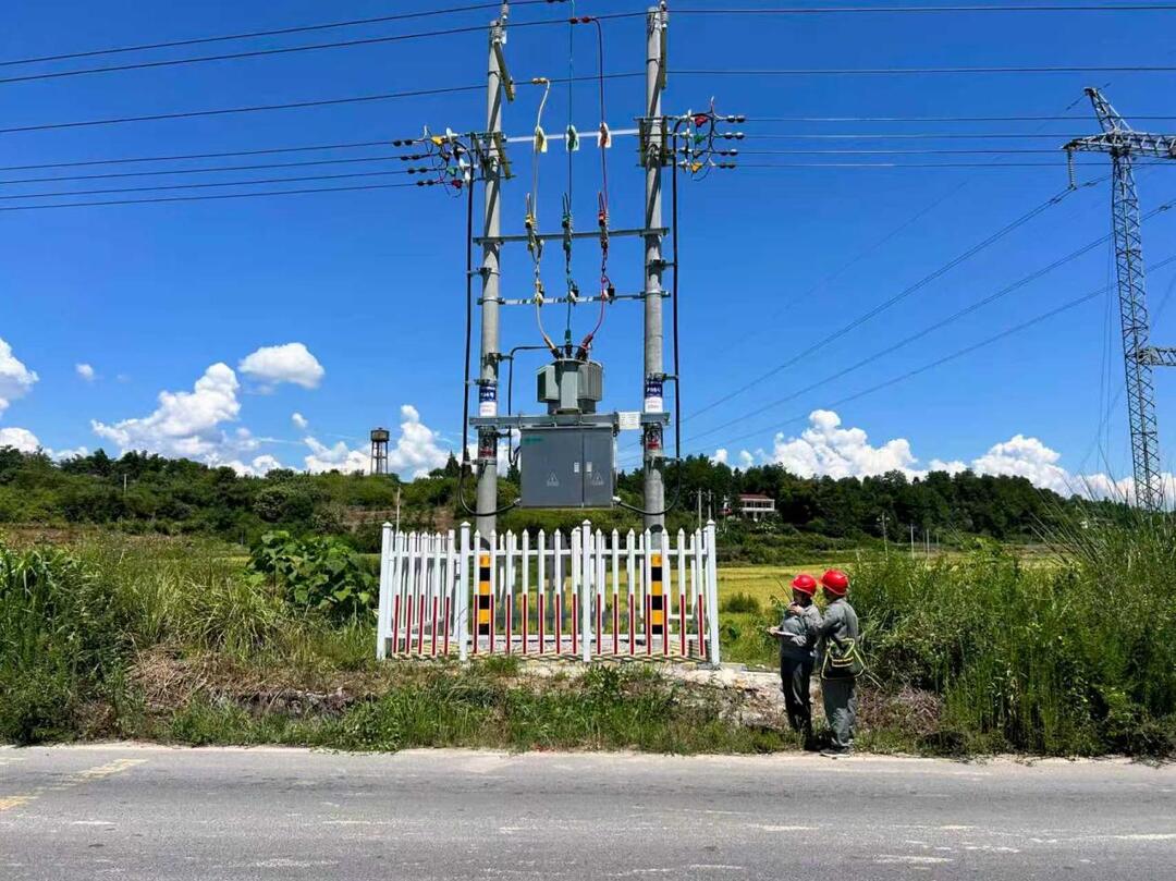 9月8日,国网邵阳供电公司工作人员在洞口县鸬鹚村,检查变压器等用电设施,回访村民农网升级之后的用电满意度。(魏艳)