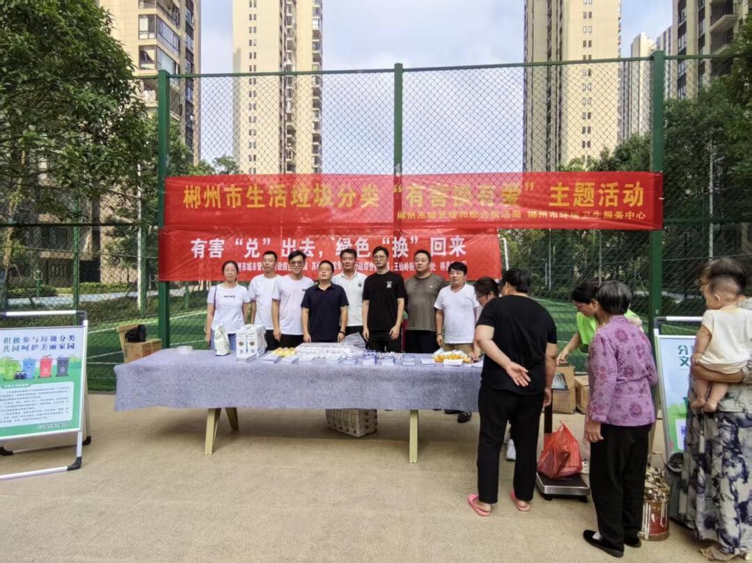 华声在线9月19日讯(通讯员 许琼)为切实提升居民有害垃圾分类意识,推动有害垃圾规范化回收处置,2025年9月18日,郴州市城市管理和综合执法局、郴州市环境卫生服务中心、苏仙区城市管理局、王仙岭街道办事处、郴县路社区、碧桂园江山一品物业在江山一品小区活动广场开展以“有害‘兑’出去,绿色‘换’回来”为主题的有害垃圾兑换活动,用“小实惠”带动“大环保”,让绿色理念深入民心。