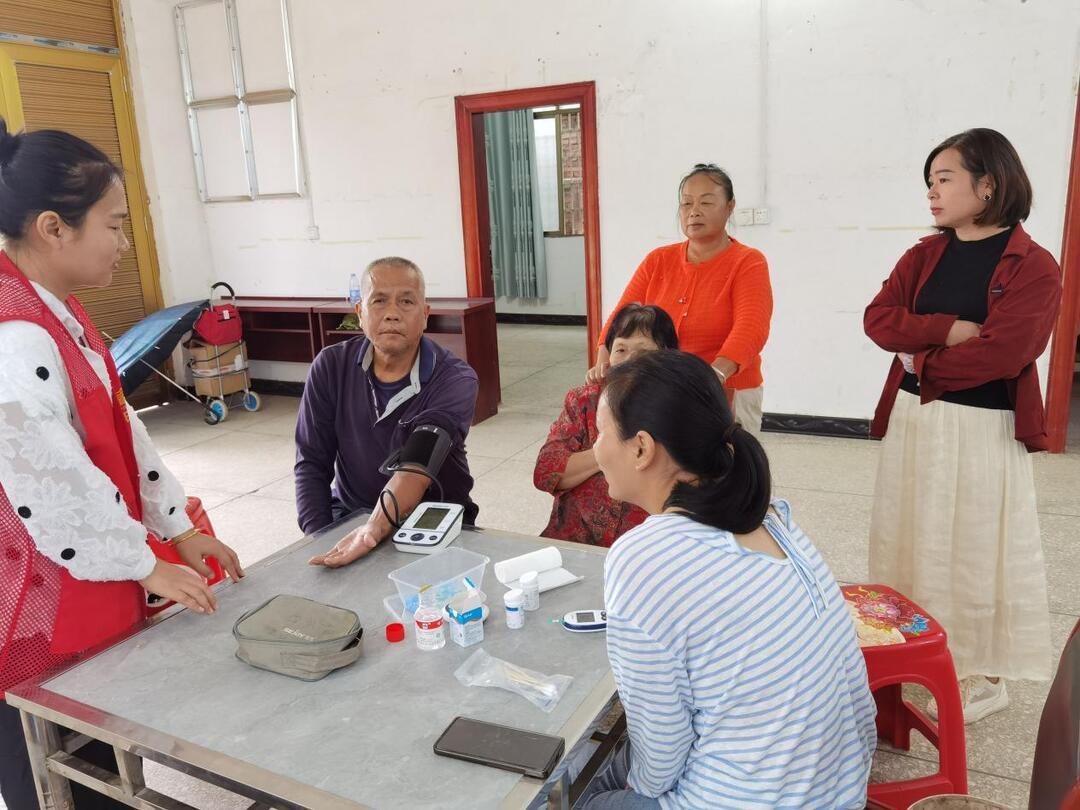 活动现场,卫生院全科医生为村民提供了免费的健康检查服务,包括血压、血糖检测等,耐心询问村民的健康状况,细致解答疑问,并针对高血压、糖尿病、脑卒中等常见慢性病提供了个性化的健康指导。