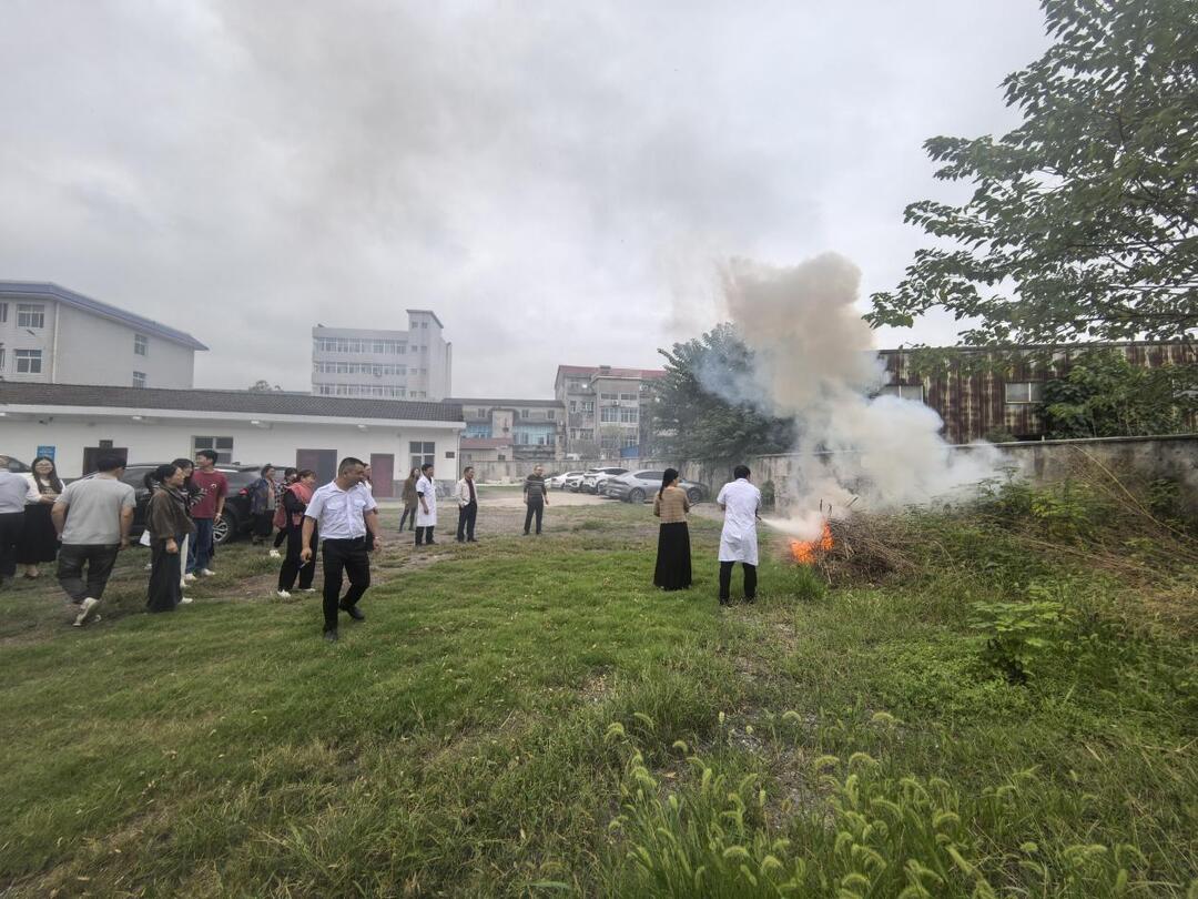 理论培训后,张教官带领医务人员来到食堂前坪进行消防灭火演练,在教官的指导下按照灭火器的规范操作扑灭初期火情;医院新入职人员以及后勤部门人员依次进行实操演练,确保真正掌握“提、拔、握、压”使用技巧,做到在紧急情况下能够忙而不乱,正确处置。