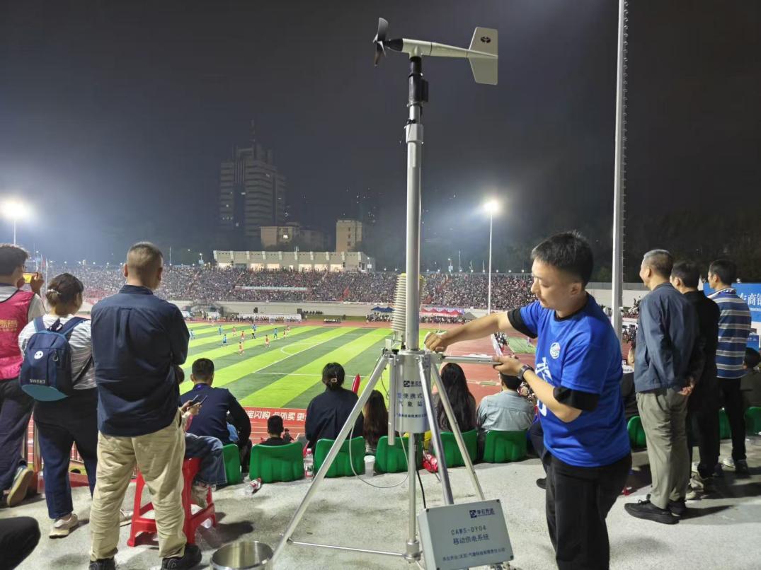 为应对赛事期间的天气变化,永州市气象局提前部署,专门成立气象服务保障工作组,主动与赛事组委会对接,定制服务方案。在赛前准备阶段,气象局为组委会提供三期天气形势分析,为赛场布置提供了重要参考。比赛前一天,工作人员已在体育场周边架设便携式自动气象站,实时监测温度、风向、风速等数据,为预报分析提供第一手资料。比赛期间,气象台共发布4期《湘超联赛气象信息专报》,提供逐小时天气预报,内容涵盖温度、风向风力等关键信息。预报员全程值守,紧盯雷达回波和卫星云图动态,确保及时捕捉突发天气变化。这种“现场监测+后台研判”的模式,显著提升了预报的精准度和时效性。