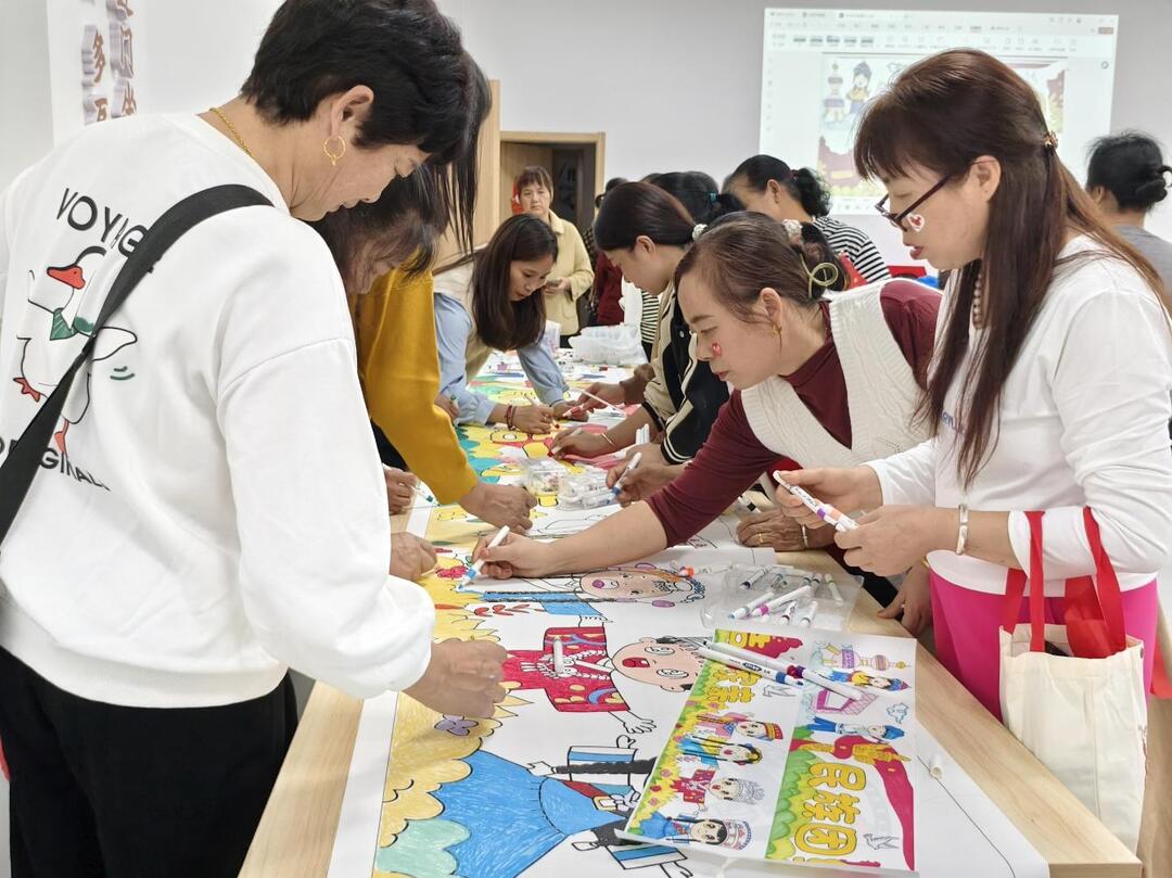 “国庆小知识”互动环节更添趣味。当志愿者提问“我国有多少个民族”时,老人们纷纷举手抢答,答对的老人拿到小国旗和爱心贴纸,开开心心地贴在自己的脸上,为迎国庆增添了一份幸福的笑容。经过近2小时的协作,温馨的“民族团结一家亲”画卷圆满完成。“以前国庆就是看阅兵、吃顿饭,这次和老邻居一起画画,是个不错的体验,很有意义!”胡阿姨一边绘画一边笑着说。