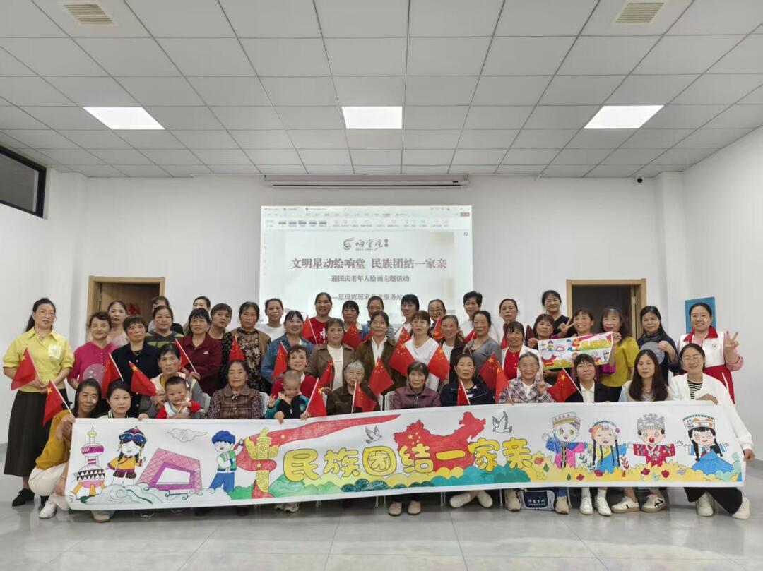 活动最后,40多名老人与长卷合影,齐声祝福祖国生日快乐。未来,养老站将继续开展更多贴合老年人需求的活动,让老人们在参与中感受社区温暖,共同营造“民族团结一家亲”的良好氛围,为祖国华诞献礼。