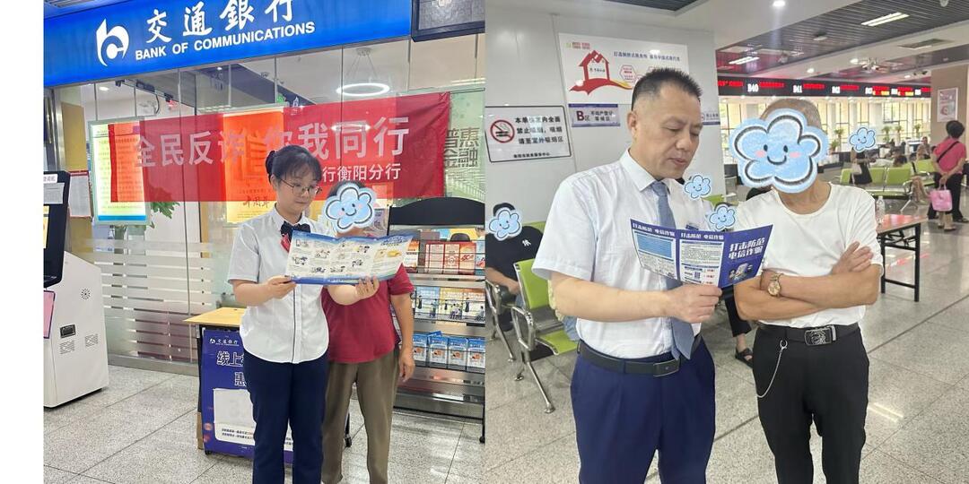 此外,衡阳华新支行联合衡阳长丰派出所、高岭办事处,在衡阳市政务服务中心开展反诈主题宣传活动。本次活动构建“金融机构+公安+街道”三方协作模式:交通银行衡阳华新支行负责金融反诈知识讲解,长丰派出所民警提供法律解读与案例分析,高岭办事处协助组织群众与现场引导,三方联动提升宣传专业性与覆盖面。活动通过多方协作、精准宣传,切实提升老年人、新市民等易受骗群体的防骗意识,筑牢群众财产安全防线。