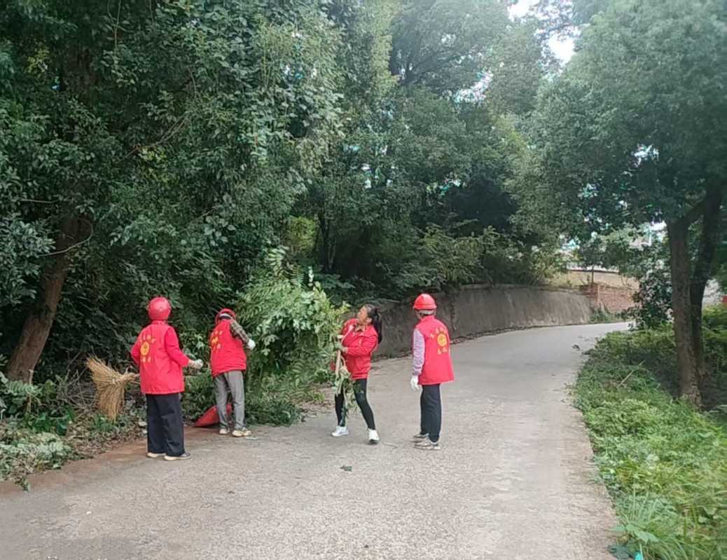 清晨8点,细雨微凉,东马社区的志愿者们已身穿红马甲,手持割草机、扫帚等工具,分散在村级公路沿线有序开展作业。针对公路两侧杂草丛生、灌木蔓延影响通行与美观的问题,志愿者们分工协作:一组人员操作割草机,对高处蔓延的藤蔓和杂树进行集中清理,伴随着机器的阵阵轰鸣,缠绕在电线杆和路旁的藤蔓被逐一清除;另一组则手持扫帚、铁锹,对路面落叶、枯枝及排水沟内堆积的杂物进行细致清扫,确保路面积水畅通、沿线干净整洁。