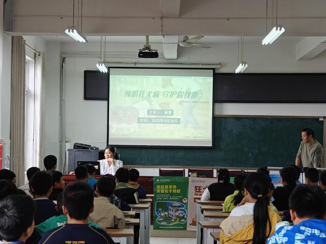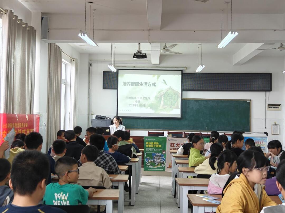 华声在线9月26日讯(通讯员 文思彤)2025年9月是全民健康生活方式宣传月,主题为“培养健康生活方式,筑牢家庭健康基石”。为引导青少年树立正确健康观念,养成受益终身的良好习惯,9月26日,坝塘镇南田坪卫生院走进坝塘镇南田坪中学,开展了一场别开生面的健康知识宣教活动。活动亦结合即将到来的第19个“世界狂犬病日”,为同学们带来了全面的狂犬病预防知识。