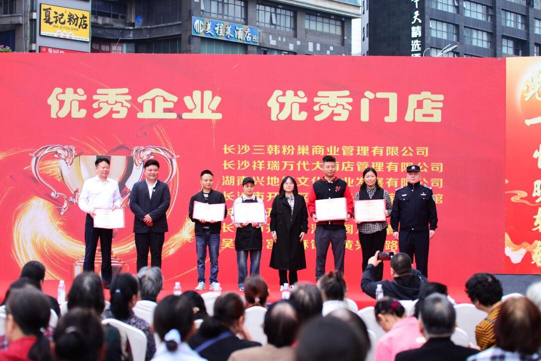 活动还对社区内积极履行社会责任、助力基层治理的优秀企业和门店进行了表彰。长沙三韩粉巢商业管理有限公司、长沙祥瑞万代大酒店管理有限公司等七家单位代表上台领奖,体现了社区与经营主体共建共治共享的成果。开福区政协常委、万代大酒店董事长熊晓峰作为优秀共建单位代表发言,承诺将继续支持社区发展,携手服务居民。