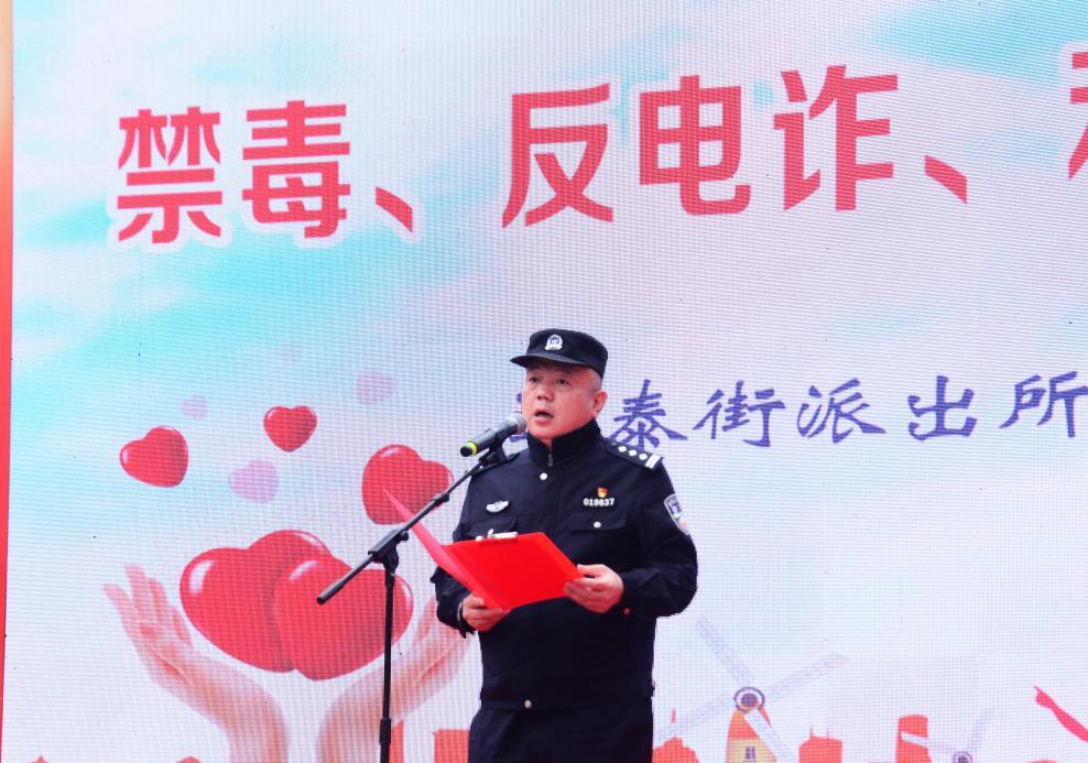 在知识宣讲板块,通泰街派出所社区民警喻强围绕禁毒、反电诈和“利剑护蕾”三项内容进行了生动讲解。他结合近期典型案例,深入浅出地揭露了毒品危害、电信网络诈骗常见手法以及未成年人保护要点,提醒居民增强防范意识,筑牢家庭安全防线。