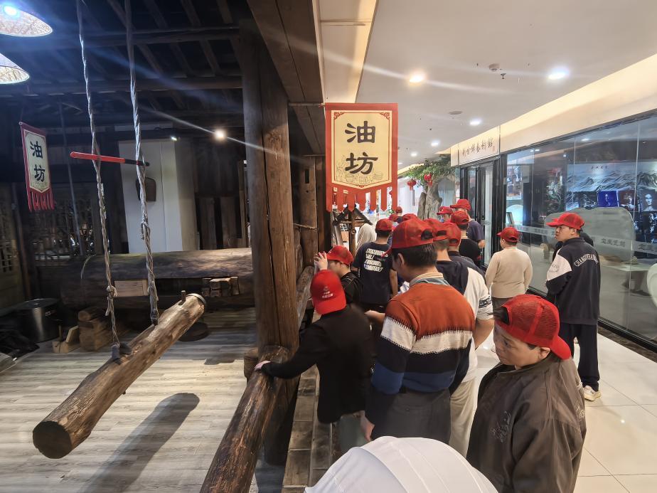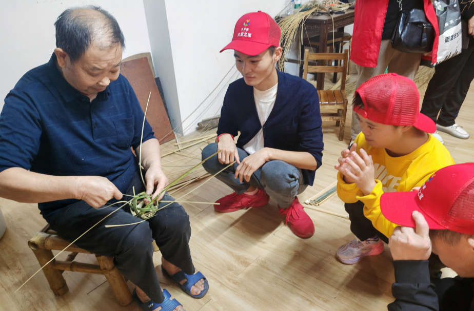 活动当天,学员们在工作人员与志愿者的全程陪伴下,有序参观红官窑瓷器、古法榨油坊、竹编等非遗展区。面对学员们好奇的目光,非遗传承人用通俗生动的语言讲解技艺细节,还手把手教学员观察竹编手法——有学员忍不住伸出手,在传承人指导下试着捏住竹条,指尖触到编织纹理时,眼睛一下子亮了起来;还有学员拿着手机,认真拍下红官窑瓷器上的花纹,不停跟身边志愿者说“这个图案真好看”。原本抽象的非遗技艺,在互动体验中变得可感可触,不少学员感叹:“以前只在街上见过编好的竹制品,今天亲眼看见是怎么编的,特别开心!”