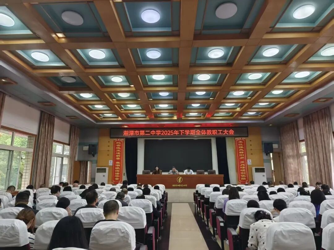 华声在线9月28日讯(通讯员 彭嘉祺)秋意渐浓,气温微降,却丝毫未减全体教职工的工作热忱。自新学期开学一月以来,湘潭市第二中学教育教学秩序井然,各项工作稳步推进。为进一步总结前期工作、明确后续方向,凝聚团队力量推动学校发展再提速,9月26日,湘潭市第二中学召开2025年下学期全体教职工大会,全体教职工齐聚一堂,共同为新学期后半程的奋斗目标锚定航向。