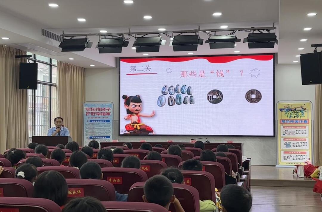 在主题宣讲环节,泸溪金融监管支局专家与达岚农商行负责人以春节档电影《哪吒》为引,围绕“认识钱的秘密”“做金钱的小主人”“理财锦囊小妙招”三个板块,系统讲解人民币基础知识、假币识别技巧及消费者权益保护相关内容,引导学生树立正确金钱观和消费观。互动环节气氛最为热烈,授课教师精心设计问答题目,学生们踊跃参与,在轻松氛围中巩固所学知识。活动最后,校方负责人对本次活动成效予以充分肯定,工作人员向学生发放金融知识宣传手册,全体师生合影留念。