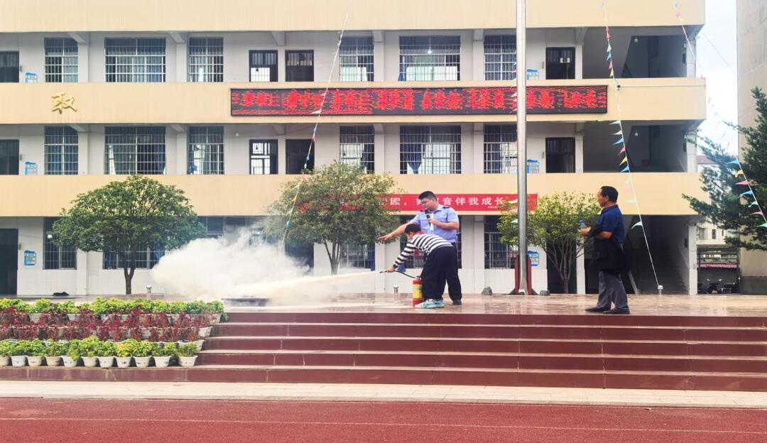 演练中,警报声响起,全体师生在护导教师的引导下,迅速、有序地从教学楼撤离至操场安全区域,整个过程紧张高效、秩序井然。而在消防技能实操环节,专业人员现场示范灭火器使用方法,师生们轮番上阵实操演练,白色的灭火泡沫精准覆盖模拟火源,将消防理论知识转化为实实在在的应急本领。