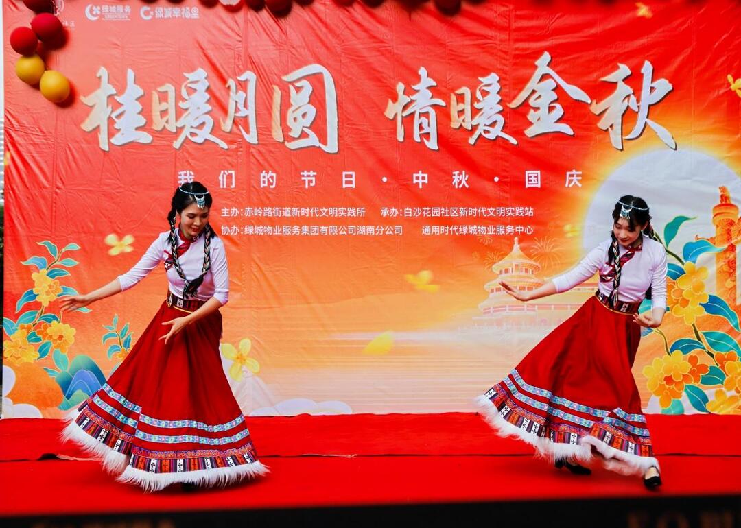 华声在线9月28日讯(通讯员 钟茜)中秋、国庆来临之际,为进一步弘扬中华优秀传统文化,2025年9月27日下午,赤岭路街道新时代文明实践所、白沙花园社区新时代文明实践站联合绿城物业服务集团有限公司湖南分公司通用时代物业服务中心在时光里网格通用时代小区北门前坪开展“桂暖月圆,情暖金秋暨我们的节日·中秋·国庆”主题活动,活动邀请了辖区党员、志愿者、居民骨干等约200人参与,营造欢乐喜庆、祥和文明的节日气氛。