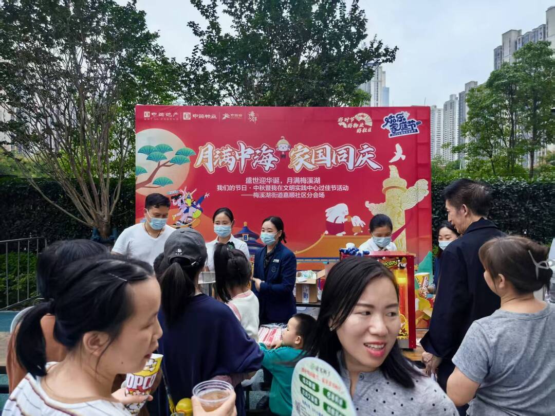 华声在线9月28日讯(通讯员 刘振兴)9月24日至27日,湘江新区梅溪湖街道嘉顺社区以“盛世迎华诞,月满梅溪湖”为主题,联动辖区五个小区及居家养老中心,连续推出“我们的节日·中秋暨我在文明实践中心过佳节”系列文明实践专场。千余名居民品月饼、做灯笼、赏晚会、看红色电影,在“双节”同庆的良好氛围中共享邻里温情,共抒家国情怀。