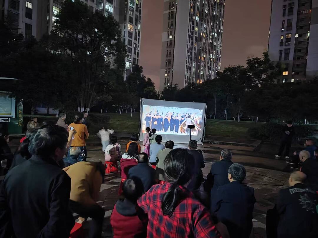 9月24日晚,嘉顺苑小区文化广场,红色露天电影《建党伟业》准时放映;9月27日晚,南山一方小区接续推出“庆国庆·迎中秋:光影映家国,月饼传温情”专场,播放爱国主义教育片《百团大战》,并现场派发手工月饼200余份。居民们搬着小板凳、摇着蒲扇,在秋风中重温峥嵘岁月。