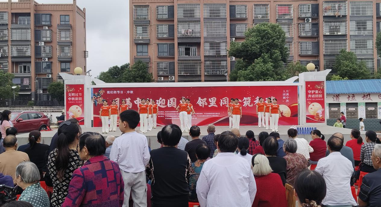 9月27日社区广场的“光影映家国”花鼓戏观赏活动同样精彩,服务站为居民免费提供板凳、饮品,打造怀旧观影场景,老人们在经典戏曲中回味岁月温情。服务站舞蹈队带来“家国同庆”文艺汇演、“巧手迎双节”手工体验及健康义诊等活动,让双节氛围浸润社区每个角落。