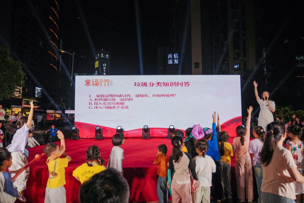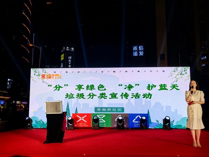 华声在线9月29日讯(通讯员 杨柳)9月28日晚7点,开福区新河街道幸福桥社区以“提升分类意识、助力蓝天保卫”为目标,在辖区天健城广场开展“分”享绿色,“净”护蓝天为主题的宣传活动,吸引众多辖区居民热情参与。