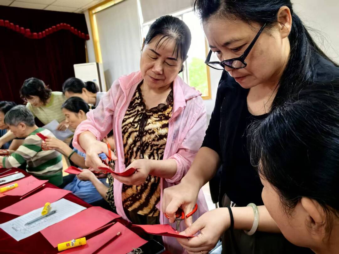 活动伊始,来自开福区老干部大学的剪纸老师们便拿出精心准备的图样与工具,从纸张选择、图案构图讲起,再到剪刀的握法、裁剪的力度,一步步耐心讲解、手把手示范。“先沿着轮廓轻轻描线,剪曲线的时候要慢一点,手腕跟着线条走……”老师一边演示,一边不时俯身指导身边的居民,纠正大家的操作细节。