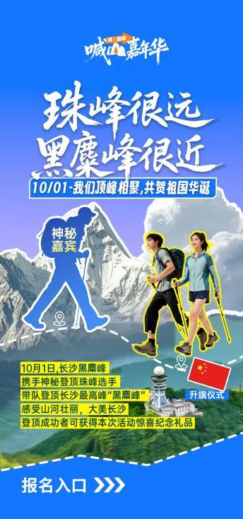 10月1日上午,“登峰记——致敬山河,礼赞祖国”特别活动在黑麋峰举行。曾成功登顶珠峰的运动员代表徐江雷将带领游客共同攀登黑麋峰。登顶后,将在山巅举行庄严的升旗仪式,参与者齐唱国歌,以群山为背景,共同庆祝新中国76周年华诞。