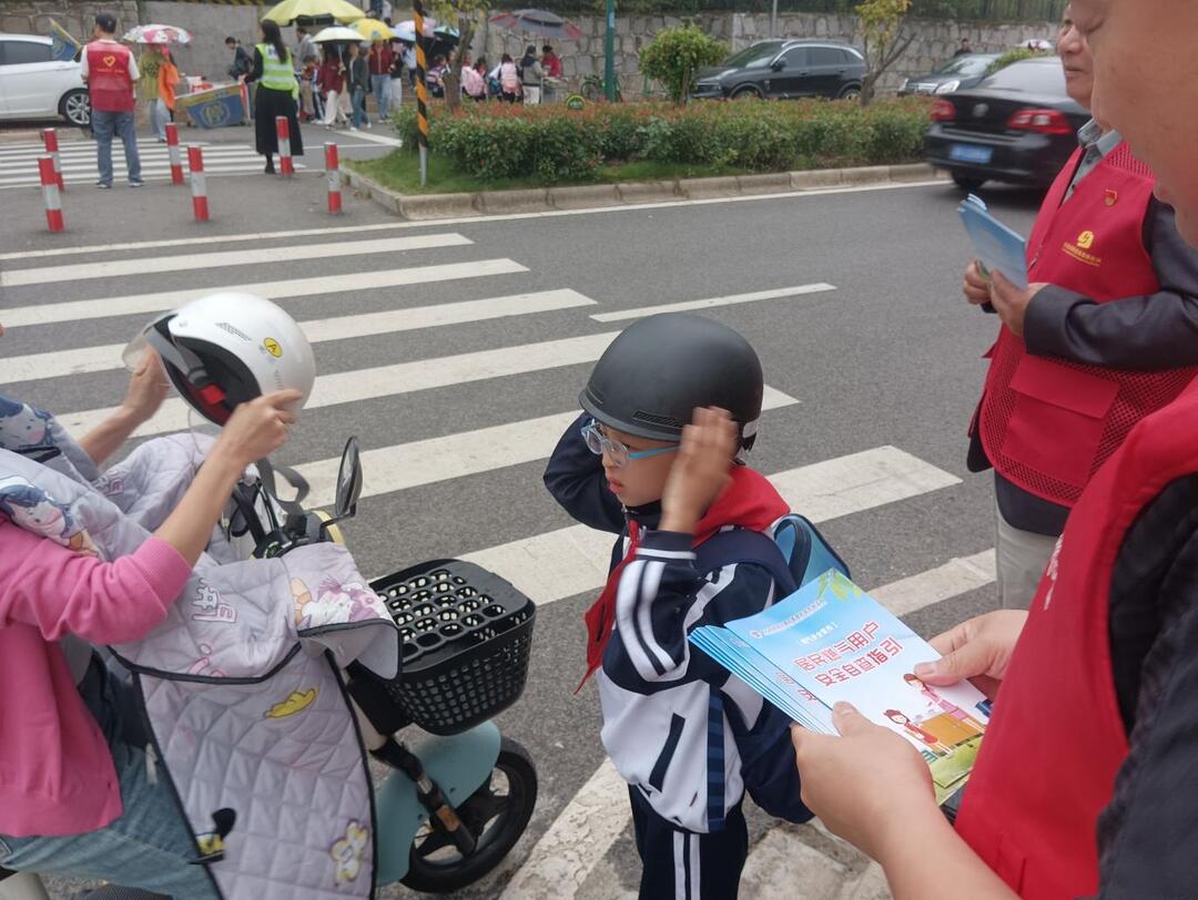 屋场会结束后,20余名党员、志愿者组成“交通安全劝导队”,前往明德美琪学校周边路口。正值放学时段,队员们身着红马甲,协助交警引导车辆礼让行人,提醒家长牵好孩童、电动车驾驶人规范佩戴头盔。同时,大家还向过往居民发放《交通安全手册》《燃气安全使用指南》,针对秋冬季燃气使用频繁的情况,特别讲解了热水器通风、燃道软管检查等安全要点,将“出行安全”与“居家安全”双知识送到居民手中。“这样的屋场会听得懂、用得上!”社区居民单阿姨拿着宣传册说。