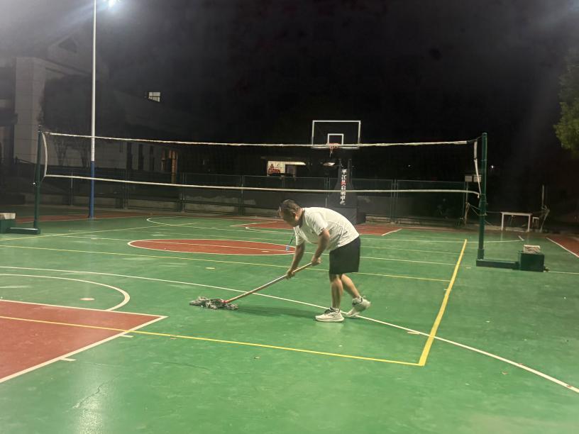 支教老师刘忠葵,则用细腻的守护,为这份热血筑牢了“后方”。每天训练前,他总会提前抵达球场,逐一拧亮场边的照明灯,再握着拖把仔细擦拭每一寸地面。当暖黄的灯光铺满球场,他便静静坐在场边等候,从不张扬。“球场脏了,怕老师们训练时摔跤。”没有多余的话语,却让每个走进球场的人,都先感受到一份稳稳的安心。