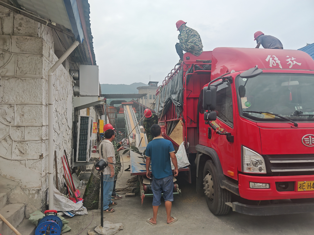 (图为城步苗族自治县粮食储备中心人员收粮现场)