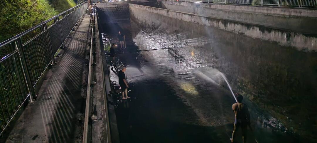 此次清洗工作于凌晨12点启动,避开企业生产和居民生活用水高峰。工作人员克服时间紧、任务重、环境潮湿闷热等困难,通过使用高压水枪、铁锹等工具,严格按照操作规程对水池内壁、底部和排泥槽等关键部位进行彻底冲刷、清淤。经过8个小时的连续奋战,圆满完成清洗工作。随后立即进行消毒处理,经过水质检测,各项指标均符合国家标准。