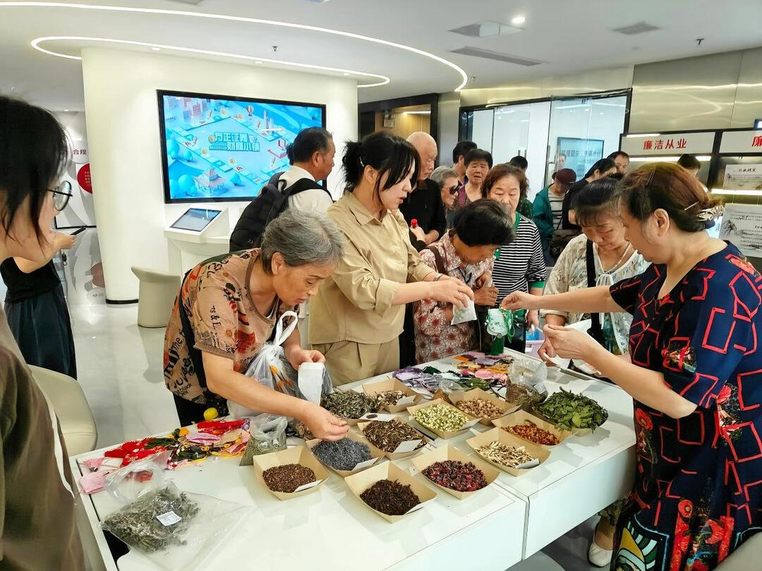 活动伊始,在社工的精心准备下,桌子上铺满了不同的药材,有茉莉、薄荷、艾叶……,居民们迫不及待的就开始制作香包了。首先放入艾草,再加入棉花填充至饱满,随后用针线闭合开口后,可系上流苏、挂上桃木珠,或在挂绳处打结固定。有些手巧的居民还会绣上简单图案,虽“没有买来的精致”,却充满手工温度。冰皮月饼的制作,更是把活动带入高潮。大家动手制作独具特色的“廉洁”月饼。月饼模具上不仅刻有祥云、玉兔等传统纹样,更特别定制了“清”、“正”、“廉”、“洁”、“明月”等字样。大家拌粉、包馅、压模,在一道道工序中,将廉洁理念深深“印”在小小的月饼之上。党员王阿姨拿着自己制作的“清”字月饼表示:“自己动手做‘廉’饼,意义非凡。吃在嘴里,甜在心里,更提醒我们要时刻保持清正廉洁的本色。”
