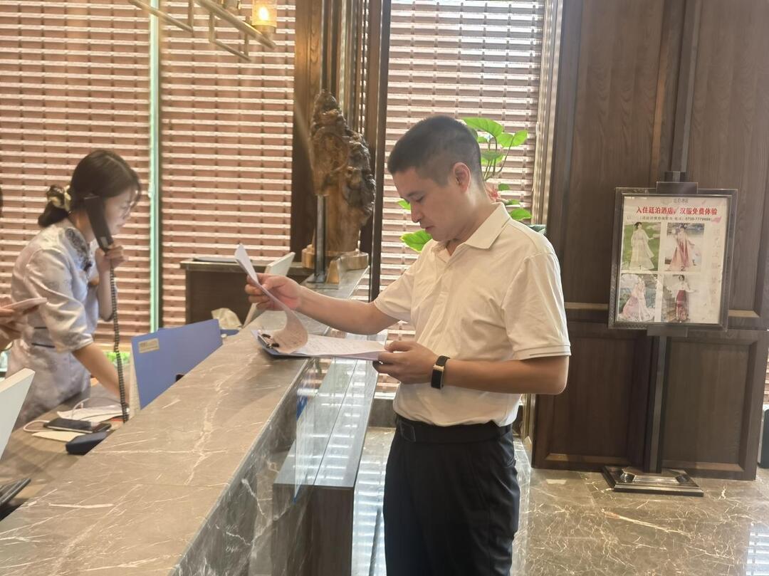 检查组先后前往中石化城南加油站、维也纳国际酒店等场所开展全面检查:在加油站,围绕消防安全细致核查灭火器配备及有效期、员工安全操作熟练度,全面排查储油设备安全状况,核验安全标识设置规范度及值班制度落实情况;在酒店,深入大堂、客房、厨房、消防控制室等关键区域,重点检查消防设备运行状态、值班人员持证上岗及应急处置能力,燃气管道安全、燃气报警器配备情况,油烟管道管理及食品卫生状况,以及疏散通道畅通度、安全标识规范设置情况。检查中同步要求各经营单位强化员工安全培训、杜绝违规操作,确保各项安全措施落实落细。