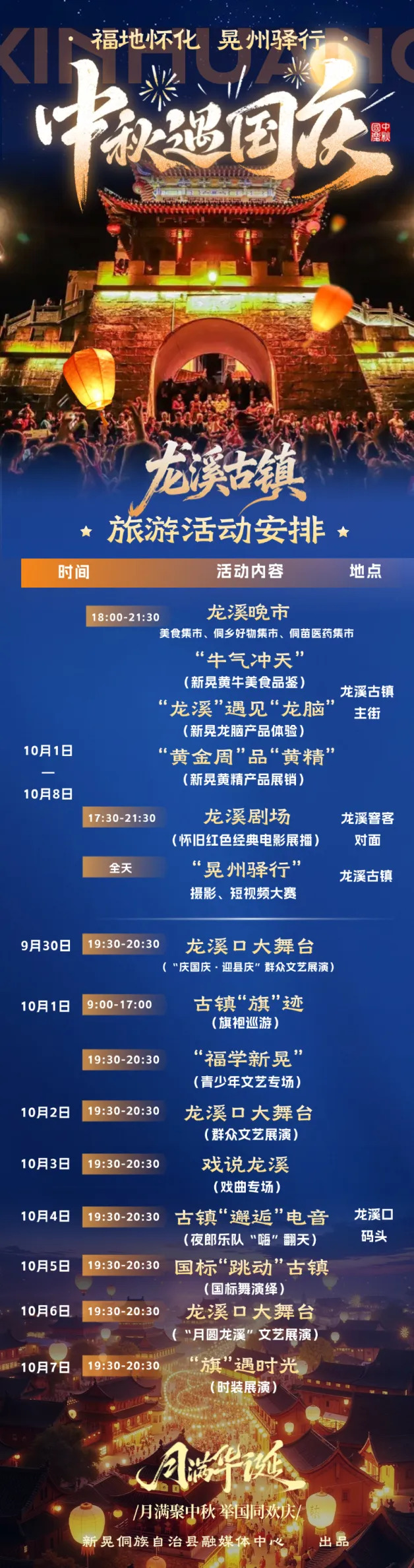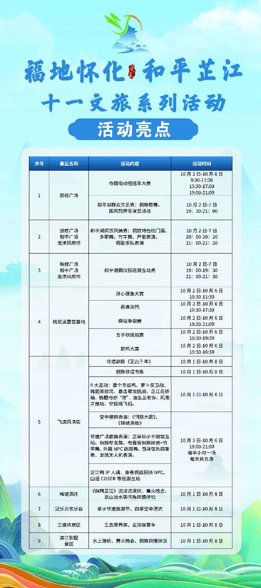 内容:怀化大峡谷、白马景区免大门票。景区国庆中秋氛围营造;大峡谷景区篝火晚会、游园打卡。