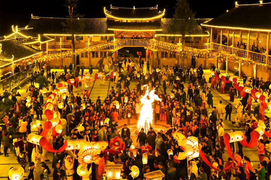 内容:以非遗实景互动演出打破传统舞台限制,以潘氏宗祠为“流动舞台”展开。活动不仅推出“非遗+爱国”主题秀《非遗赞中华》,邀请中方竹编艺人现场编织巨型“国旗轮廓”,还在古村墙体上举办古村光影记忆展,投影“荆坪古村老照片+中方非遗发展史+祖国建设成就”的对比画面。