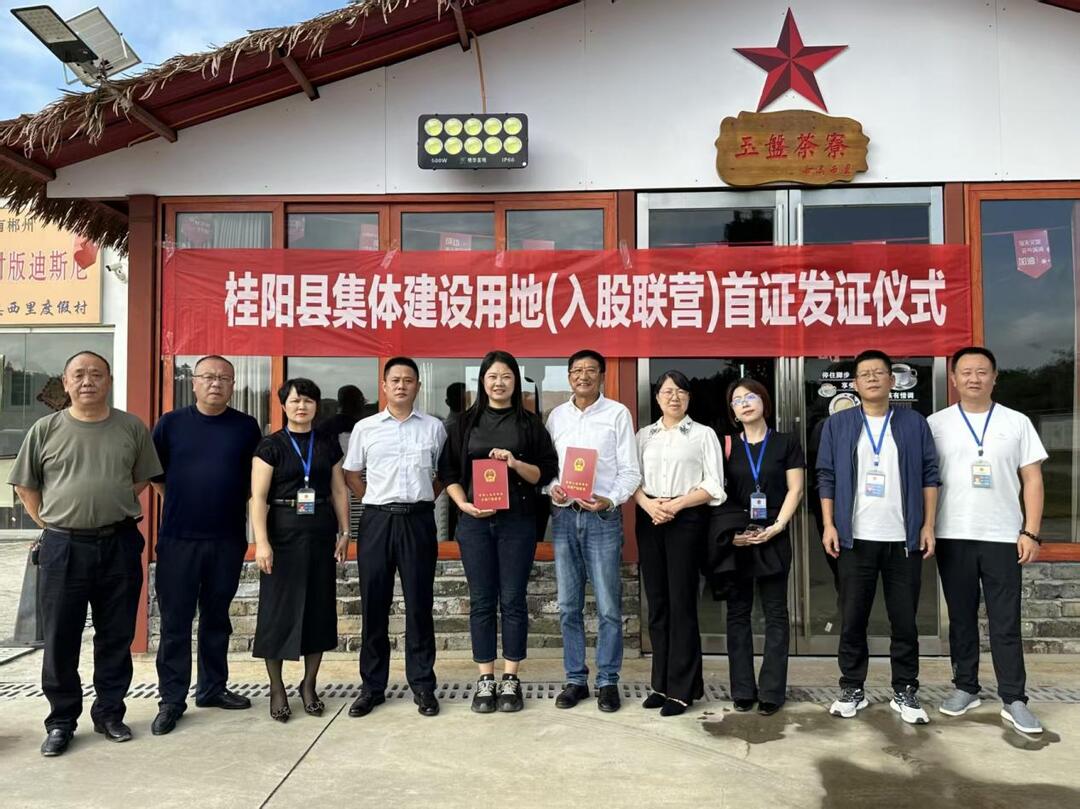 2025年9月26日下午,桂阳县方元镇谷田村迎来一件喜事。县自然资源局为西溪田园乡村振兴项目颁发全县首本“集体建设用地使用权(入股联营)”不动产权证书,并同步开展“送证上门”“交地即交证”服务活动。此举标志着桂阳县在集体建设用地入市改革方面取得重要突破,也体现了自然资源部门服务基层、优化审批的创新实践。