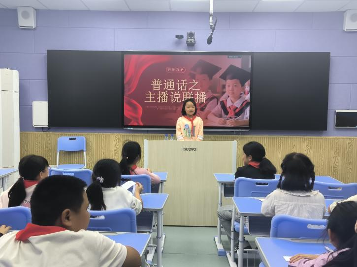 学校充分利用电子屏、广播站等宣传阵地,滚动播放宣传标语,每日开设推普专题节目,内容涵盖发音技巧、易错字辨析及经典诵读等,使规范用语用字的意识如春风化雨般浸润学生心田。