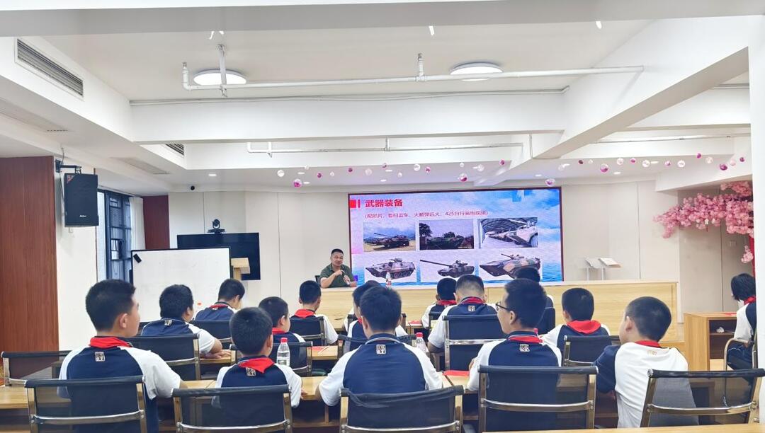傅书记又通过高清图片和视频,逐一介绍亮相的先进武器装备,从具备精准打击能力的东风系列导弹,到可实现全域作战的新型主战坦克,再到守护领空安全的第五代战机,每一款装备的性能特点、战略意义,傅书记都用通俗易懂的语言讲解得清晰透彻。“这款新型战机的隐身性能特别强,能在敌人发现之前完成任务;东风导弹更是我们国家的‘大国重器’,是守护家园的坚强后盾!”随着傅书记的讲解,孩子们不时发出惊叹,眼神中满是自豪与向往。