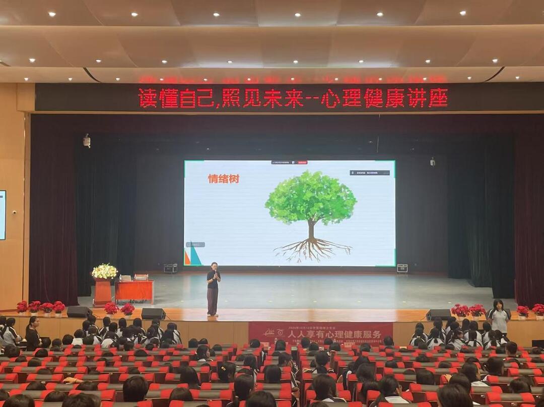 本次活动紧扣“人人享有心理健康服务”核心主题,以“科普+互动+赋能”为核心,兼顾学生与教师双群体需求,既让心理健康知识“活”起来,更让心理支持服务“落”下去。其中,面向学生的心理健康讲座环节,开福区心悦怡心理健康服务中心谭虹影老师以极具代入感的“未来小调研”拉开序幕,通过“想象20岁的自己在做什么?过得好不好?想起这些时当下情绪怎样?”三个问题,迅速打破传统讲座的距离感,引导学生主动聚焦自身情绪与未来期待,现场氛围快速升温。