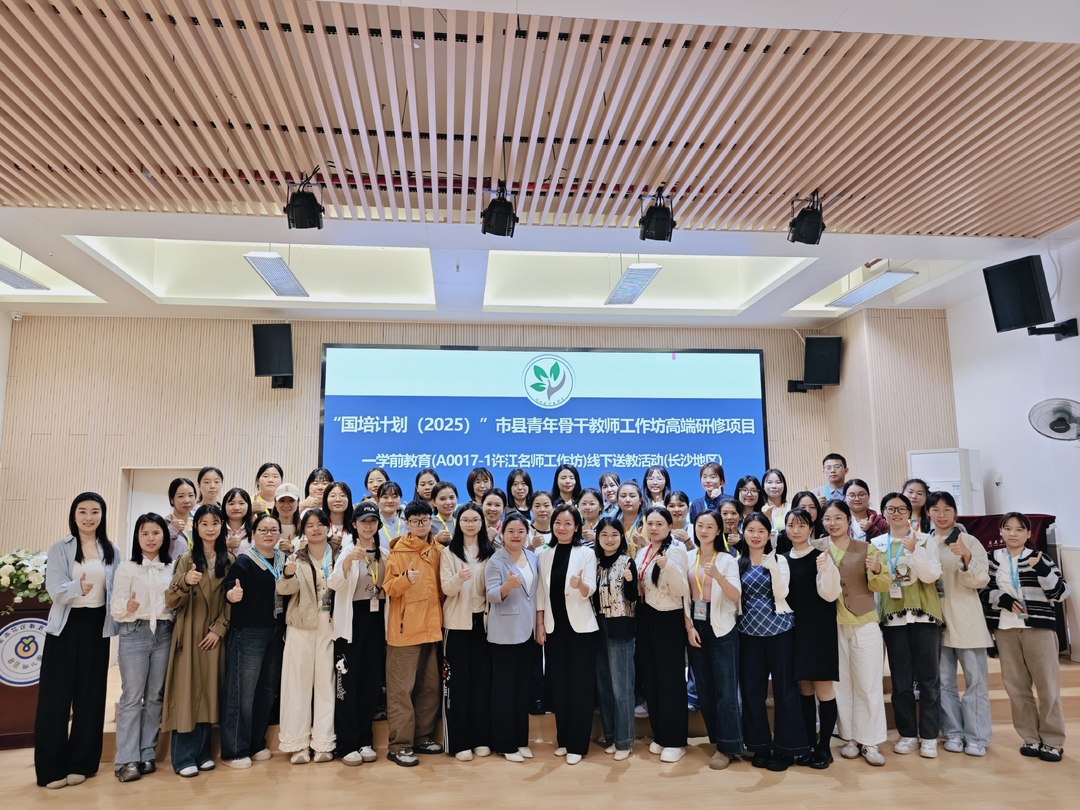 华声在线10月15日(通讯员 黄雪敏)金秋十月,国培计划(2025)市县青年骨干教师工作坊高端研修项目(A0017-1许江名师工作坊)线下送培活动于10月14日在长沙市雨花区教育局幼儿园圭星幼儿园成功举办。湖南省“双名计划”许江名师工作室首席许江、核心成员周雅琼园长与40名国培班学员共聚一堂,围绕“幼儿园美好盥洗活动的策略”开展深度教研。
