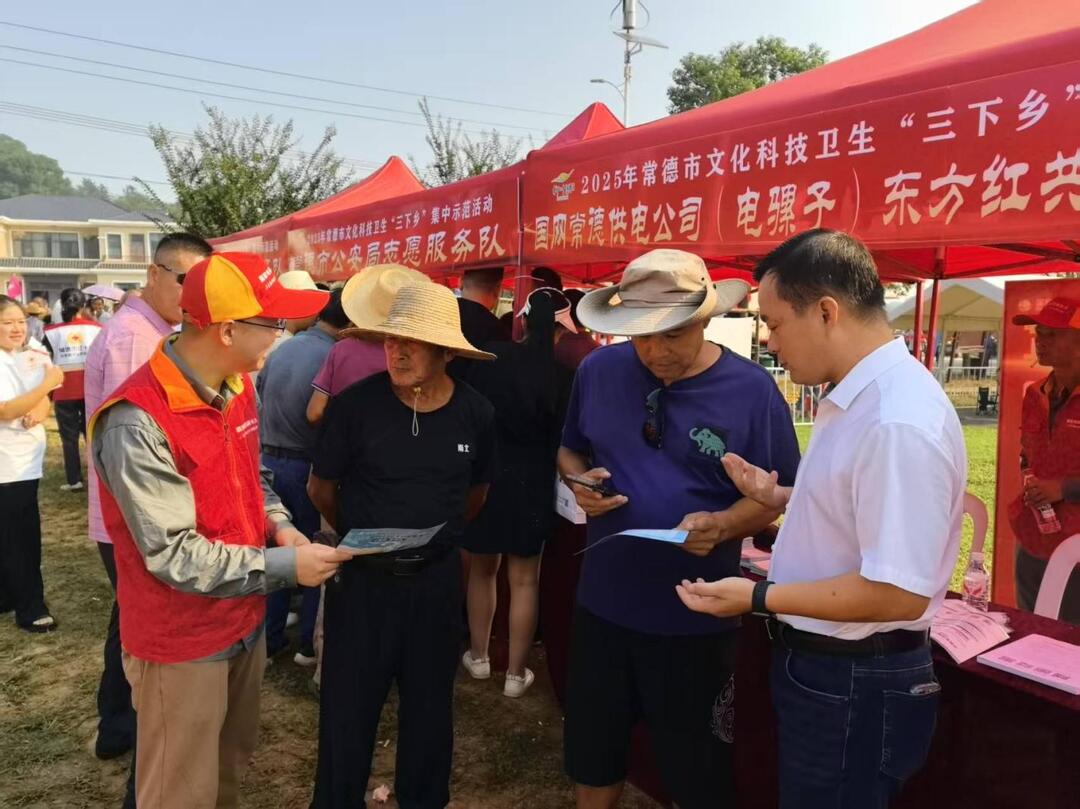 华声在线10月15日讯(通讯员 杨蕊菥)10月10日,2025年常德市文化科技卫生“三下乡”集中示范活动在武陵区柳叶湖街道梁山村热闹启幕。国网常德高新园区供电支公司为此成立"企兴"保电工作小组,以坚实电力保障、优质便民服务与精准帮扶举措,为乡村振兴注入强劲“电力动能”。